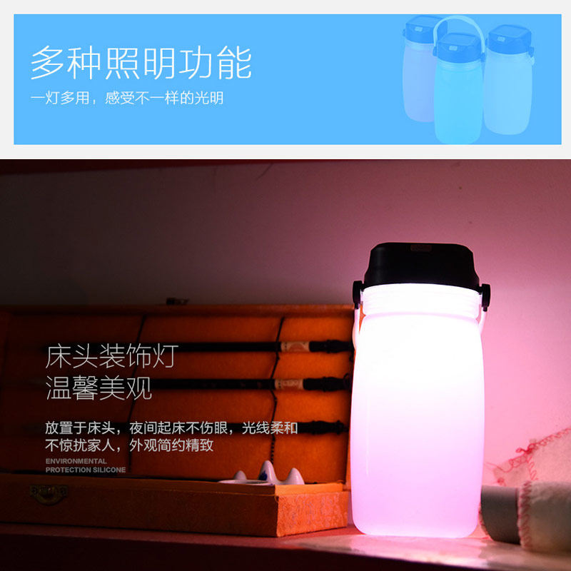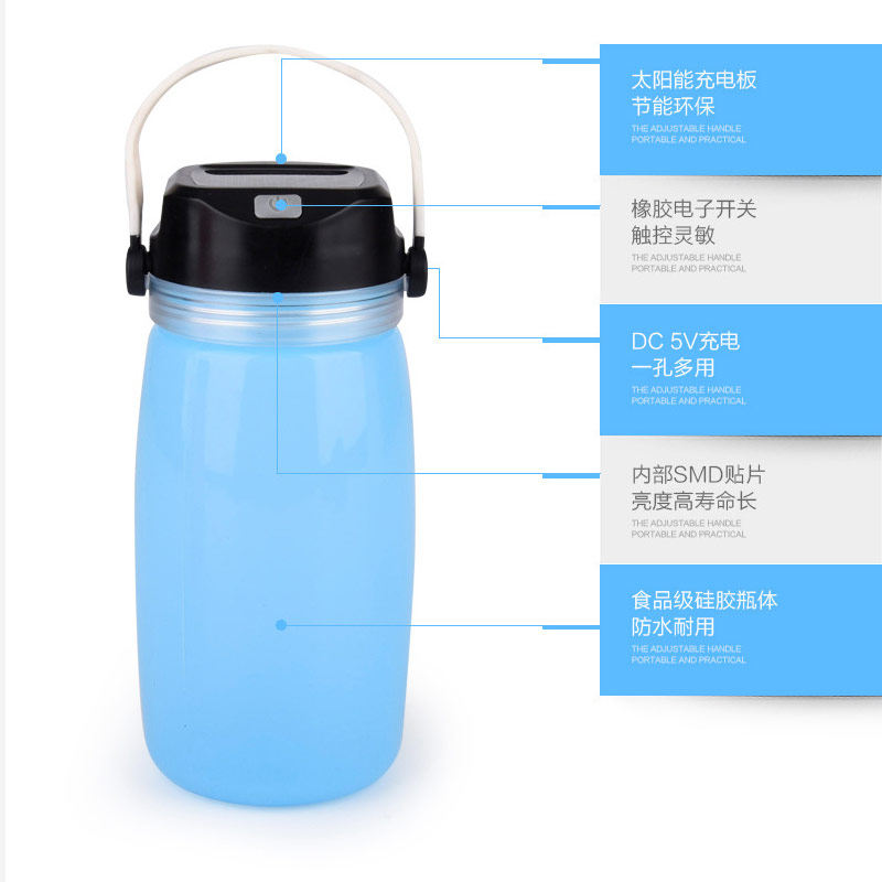 Outdoor solar charging riding drifting bottle water cup LED silicone camping light mobile charging tent light