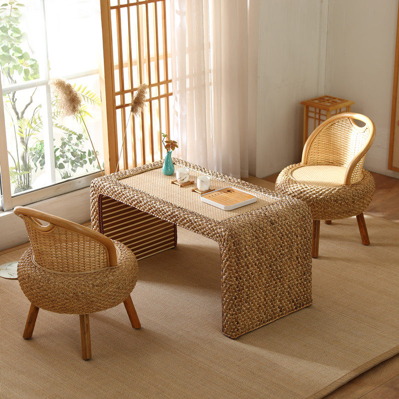 Rattan tatami coffee table table and chair combination creative balcony bay window table floor table tea ceremony tea art table and room table