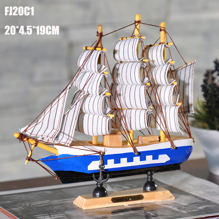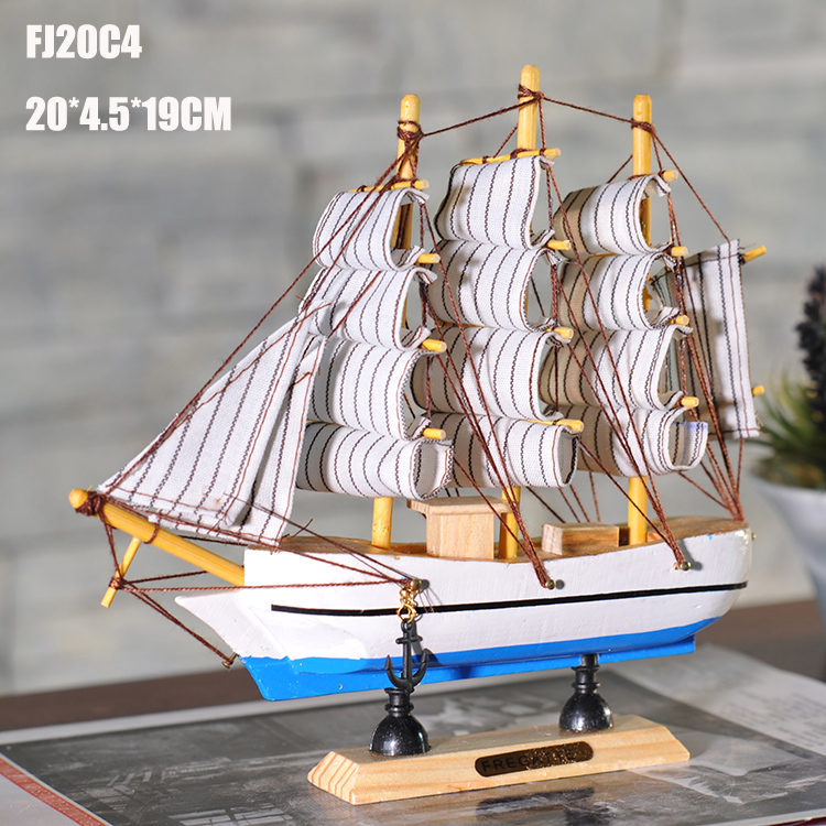 Wooden sailboat model decoration Mediterranean living room home decoration smooth sailing craft handmade boat 20-24CM