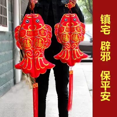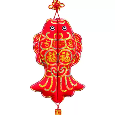 New Year pair of fish pendant Living room entrance Chinese knot embroidery scaly fish Chinese fish blessing pendant Room decoration