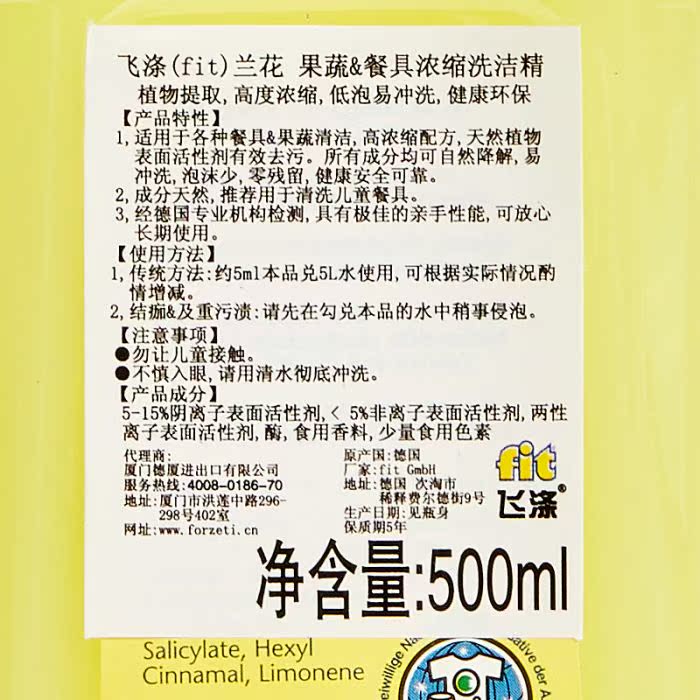 fit (flying washing) German original imported dishwashing liquid orchid fruit and vegetable tableware concentrated dishwashing liquid 500ml