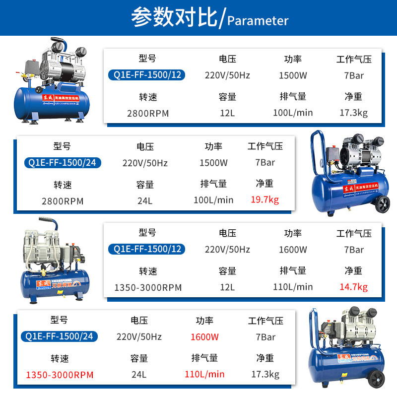 Dongcheng air compressor oil - free silent small air pump high pressure air pump 220V air compressor