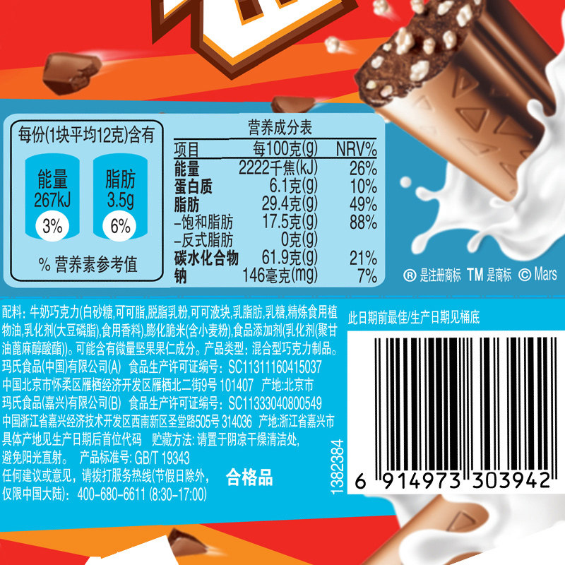 Milk Chocolate 30% (White Sugar Cocoa Butter Cocoa Sauce Nonfat Milk Powder Anhydrous Cream Phospholipid Vanillin) Hazelnut 28.5% White Sugar Vegetable Oil Wheat Flour Whey Powder Low Fat Cocoa Powder Food Additive Salt
