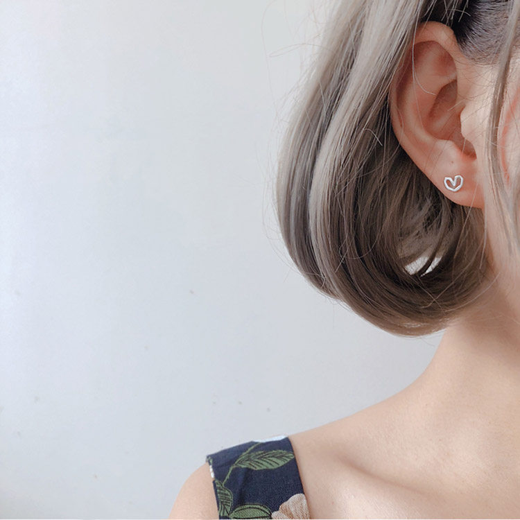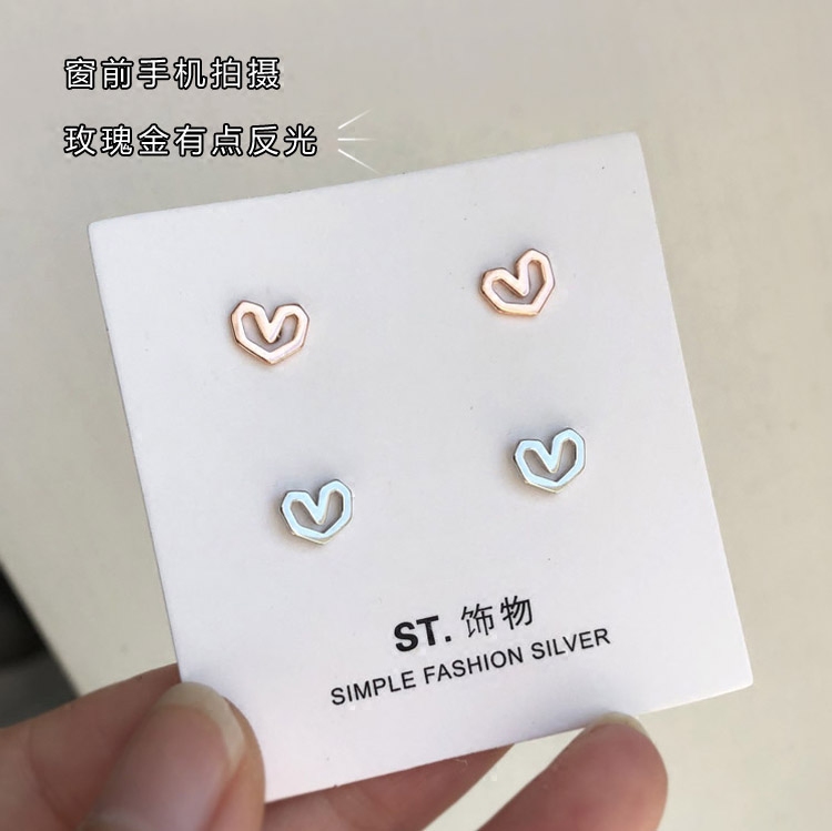 Simple Cut Faceted Love Small Stud Earrings 925 Sterling Silver Rose Gold Delicate Hypoallergenic Earrings Cute Mini Earrings