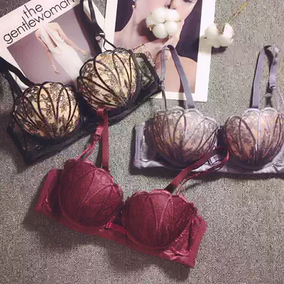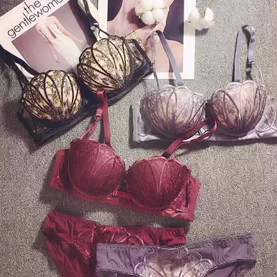 European and American embroidery sweet shell half cup lace ladies underwear set sexy gathered adjustable small chest underwear