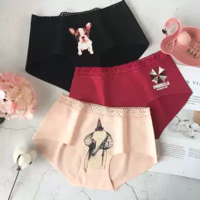 Pure cotton lace no trace underpants women cute one piece of waist breifs hip autumn and winter panties
