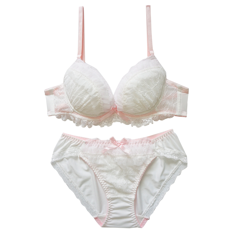 Japanese girl cute white lace underwear large rim light cup gathered comfortable large size underwear set