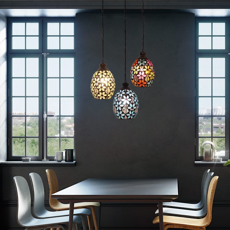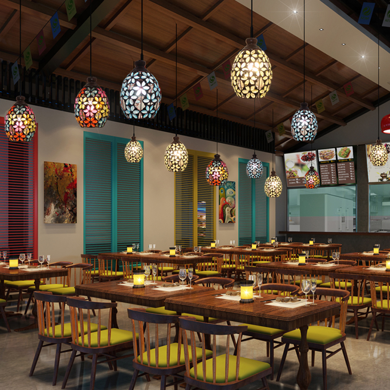 Nordic Retro Pendant Lamp Iron Art Handmade Single Head Flower Dining Hall Bedroom Thai Style Chinese Genguan Aisle Balcony lamp