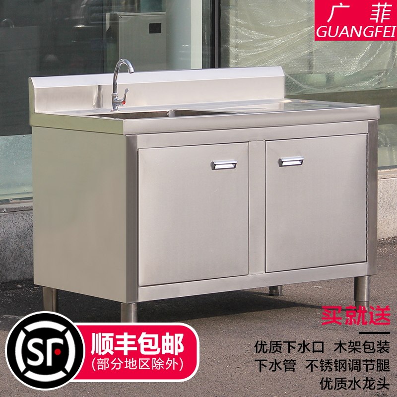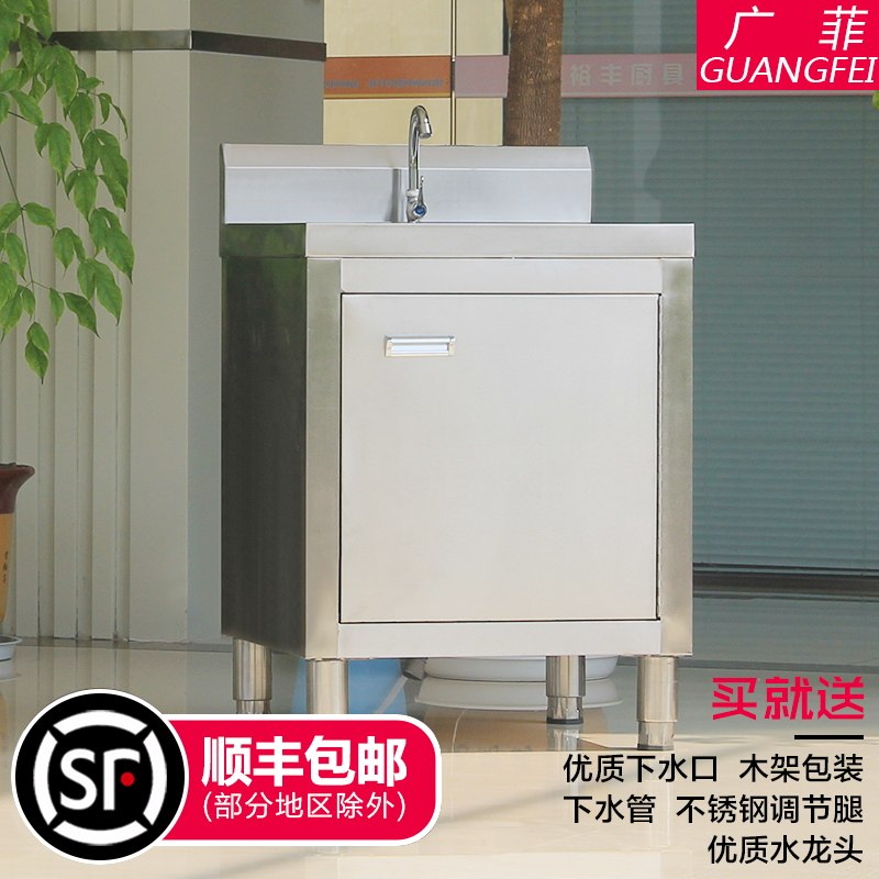 Commercial stainless steel single double three-eye pool sink vegetable basin household cabinet type hand washing dish draining disinfection pool tank