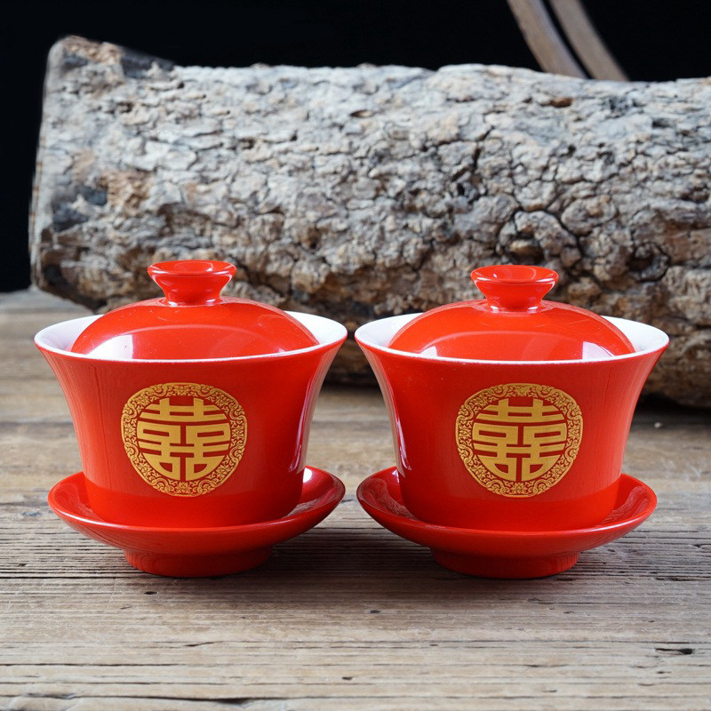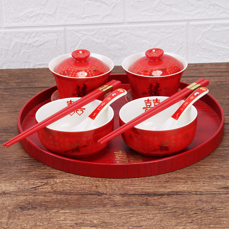 Wedding wedding supplies bride accompanied by newcomer drinking sweet soup ceramic to bowl Chinese wedding toast with tea cup wedding bowls chopsticks suit-Taobao