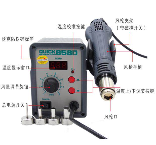 Quick-gram QUICK858D digital display thermoregulation thermostatic hot wind gun mobile phone repair tool softly rotating wind hot wind gun