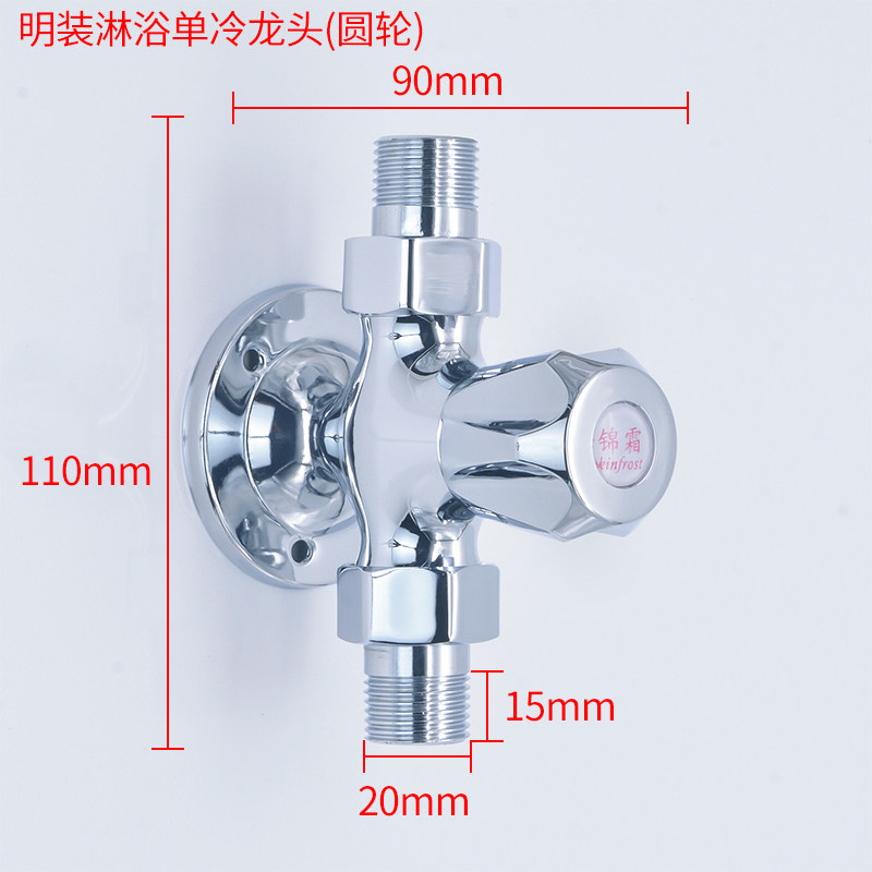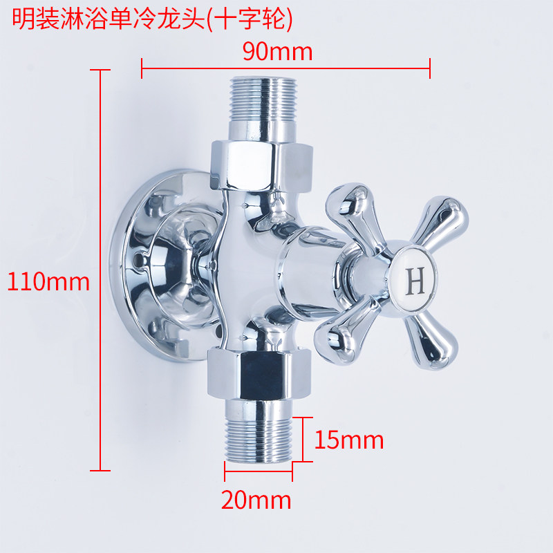 Full copper single water Ming loading shower tap double external wire live connection to valve hanging wall single cold shower shower 4 minutes switch
