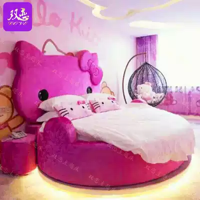 Hot selling pink Romantic Princess round bed hotel cartoon cat theme bed clubhouse fun multifunctional remote control electric bed