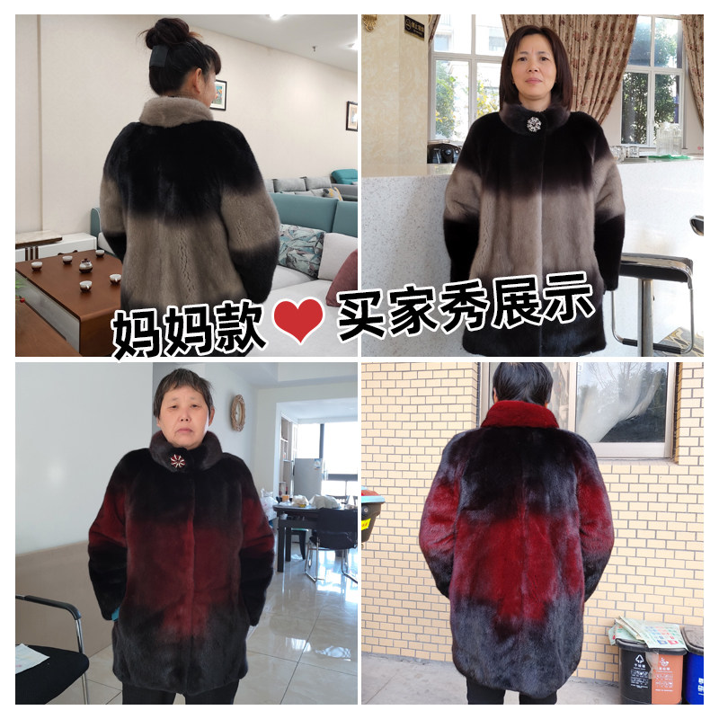 Mum's mink fur ladies middle-aged and elderly fur coat imported whole mink mink fur coat mid-length version