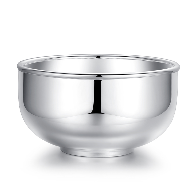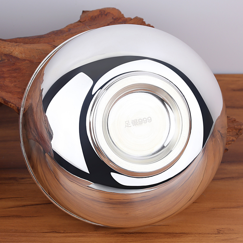 Glossy Silver Bowl 999 Silver Tableware Double-layer Insulation Mirror Polished Glossy Silver Bowl Adult Children Snowflake Silver Tableware