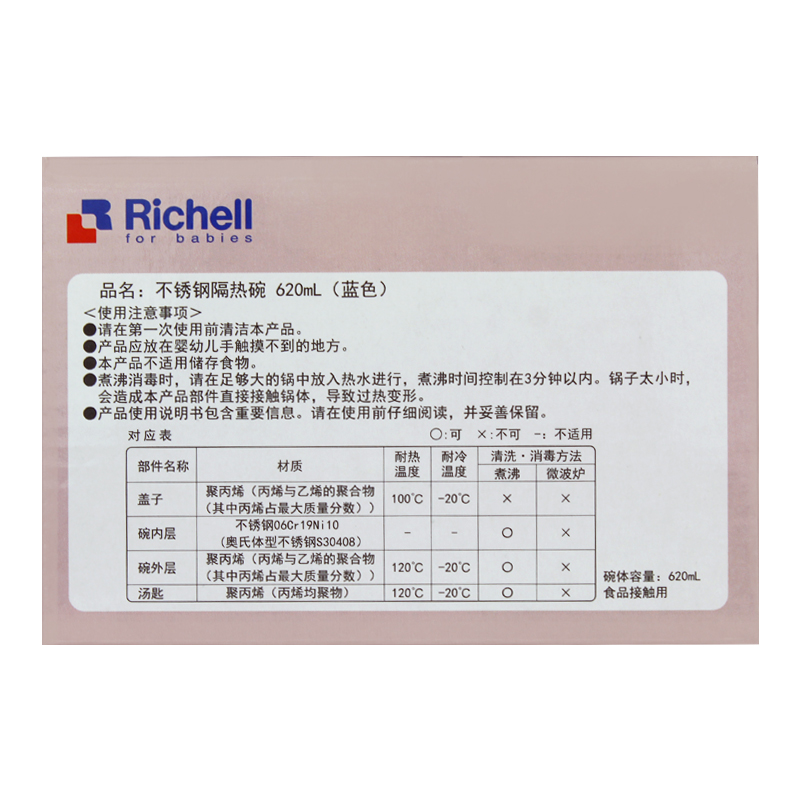 Richell baby stainless steel bowl Baby bowl Grinding non-food bowl Double insulation children's tableware