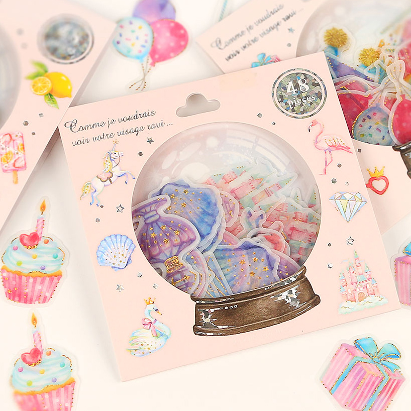 Japanese-style hand-account stationery maiden pink crystal sticker package swan flamingos unicorn cat lollipop