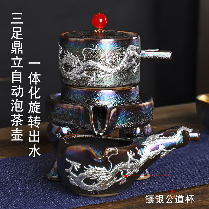 Creative Jianzhan Colorful stone mill automatic lazy Kung Fu tea set Household living room Chinese Teapot set