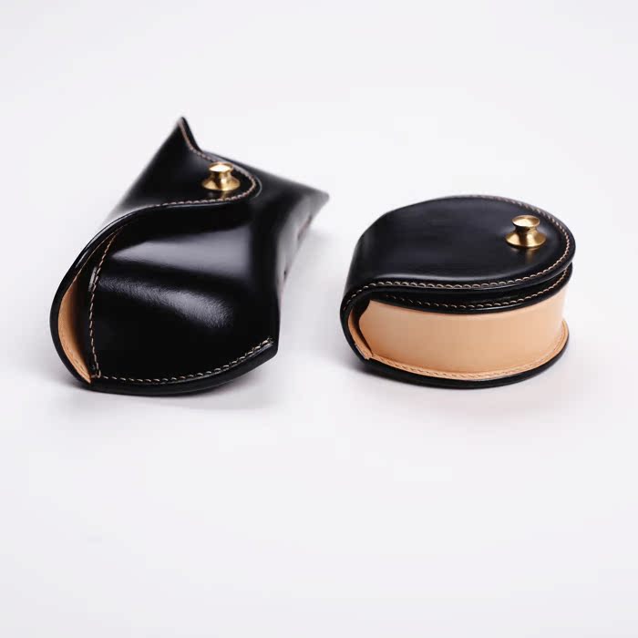 kamo-out-of-product black waist-hip leather glasses case containing box combined suit Ray punt glasses case headphone case