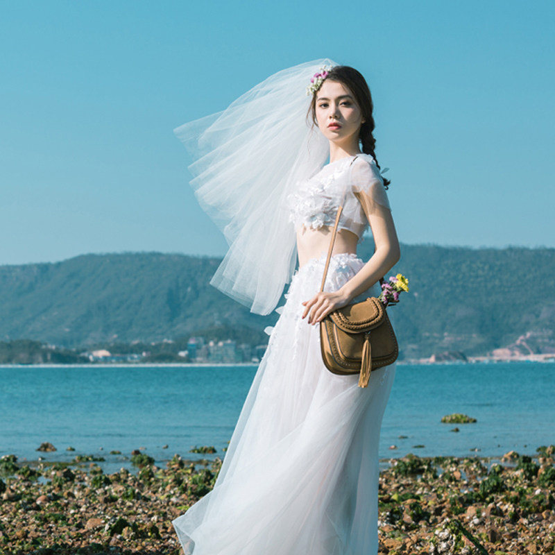 Bridal veil short super fairy wedding certificate travel new Forest department puffy net red photo props Wedding headdress
