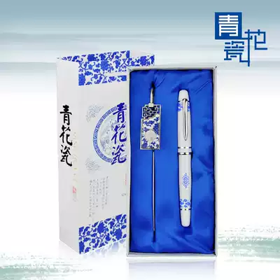 Blue and white porcelain set business practical annual meeting gift pen signature pen bookmark abroad gift can be customized LOGO