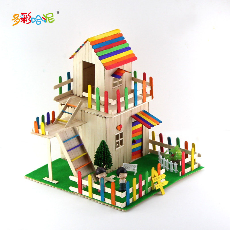 Kindergarten Children DIY Handmade Creative Material Ice Cream Bar Model Making Ice Stick Small Wood Slice Ice Cream Colored