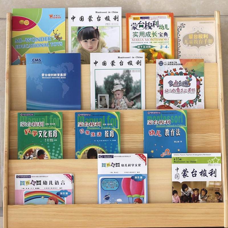 Kindergarten Early Education Center Children's solid wood Bookshelf Baby painted frame Children bookcase Wooden Student Containing shelf