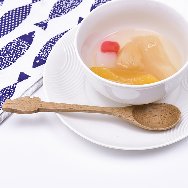 Creative wooden spoon Japanese environmental protection Beech children's cartoon wooden spoon Household spoon fork one-piece wooden tableware mixing spoon