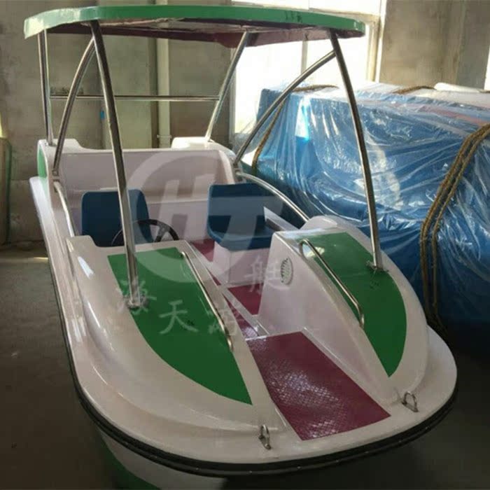 Four-person self-draining electric boat Water tour sightseeing fiberglass boat Couple Park cruise 4-5 person electric boat