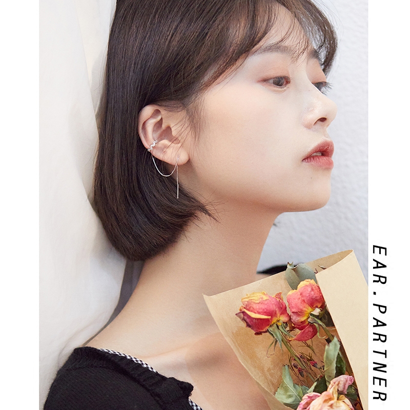 925 pure silver ear neckline female temperament Korean personality 100 hitch-length version streaming suearrings earrings earrings with net red concots