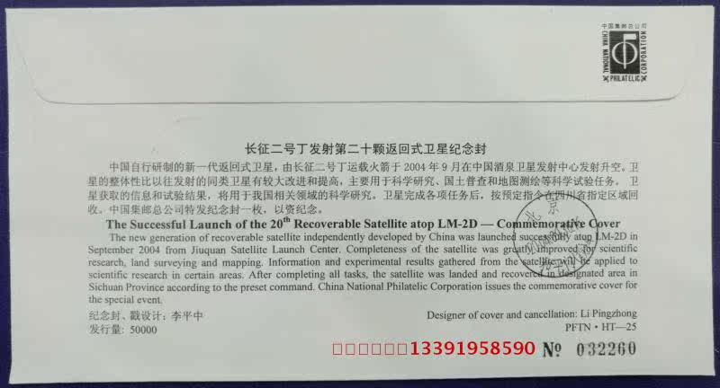 Head Office Space Series 25 Souvenir Cover (Long March 2 Ding Rocket Launch 20 Back to Satellite Remembrance