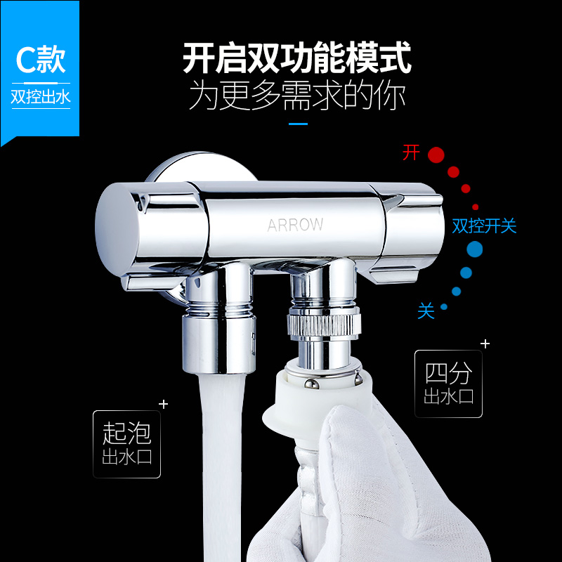 Mini washing machine water nozzle in two out of tee copper angle valve round handle washing machine tap short section round handle washing machine faucet long version upgrade style washing machine mop pool dual-use faucet automatic water-stop laundry