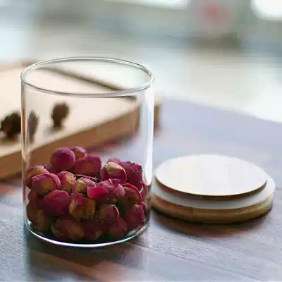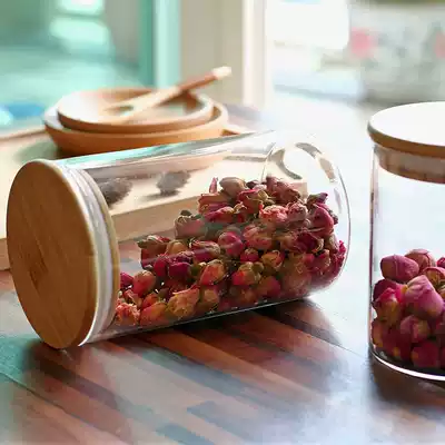 Glass tea jar Flower tea jar Miscellaneous grains Dry goods dried fruit storage sealed jar Large with bamboo and wood lid