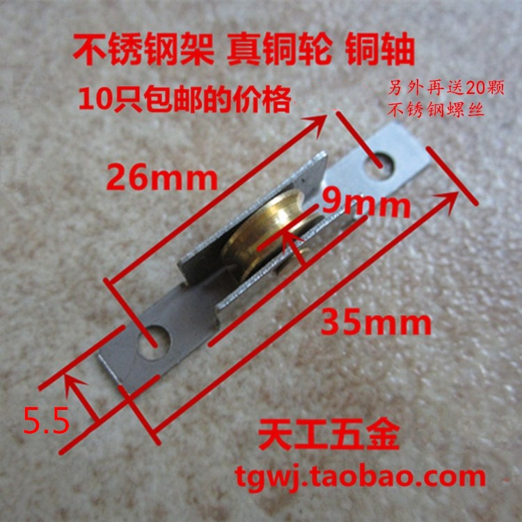 10 only aluminum alloy anti-mosquito screen window screen door pulley 5 5mm stainless steel outer frame real copper groove wheel