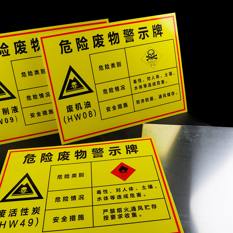 Hazardous waste warning signs, waste oil, waste cutting fluid, waste rag, sludge, waste paint barrels, hazardous waste identification signs, safety signs, warning signs, t stickers