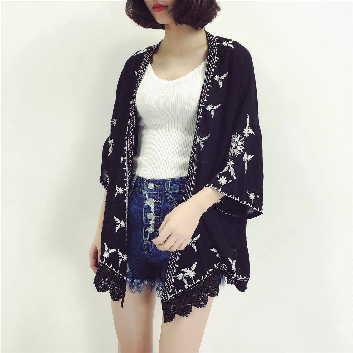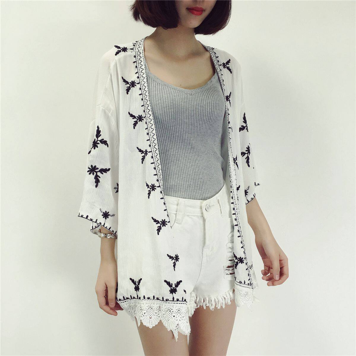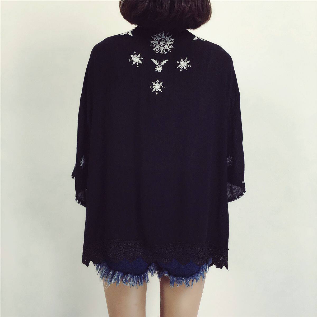 Seaside Holiday National Wind Cape Embroidered Cardiovert Hooded Sweatshirt Woman Swimsuit Hood for long version of beach jacket blouse