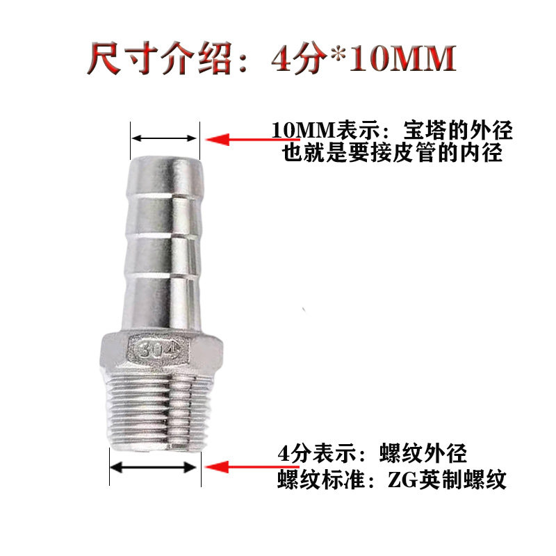 304 stainless steel pagoda joint leather pipe tap water pipe water pipe water nozzle external wire thread hose quick joint