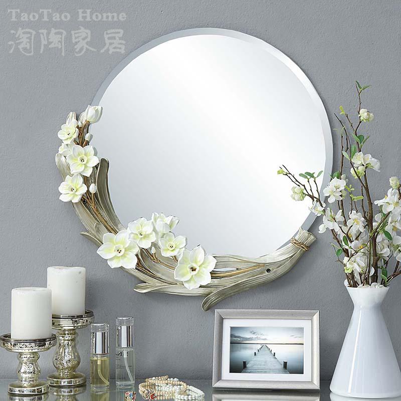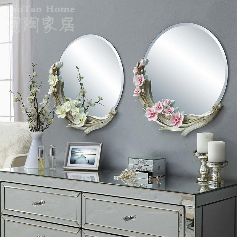 Eurostyle Fields Garden Wind Decoration Resin Bathroom Mirror Hanging Wall Style Bathroom Mirror Washbasin Round Wall-mounted Dresser Cosmetic Mirror