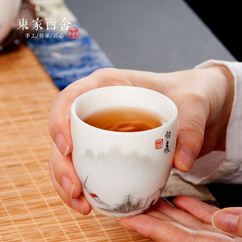 Dongjia Dehua white porcelain handmade hand-painted teacup Tea cup Sheep fat jade porcelain Ceramic master cup tea set