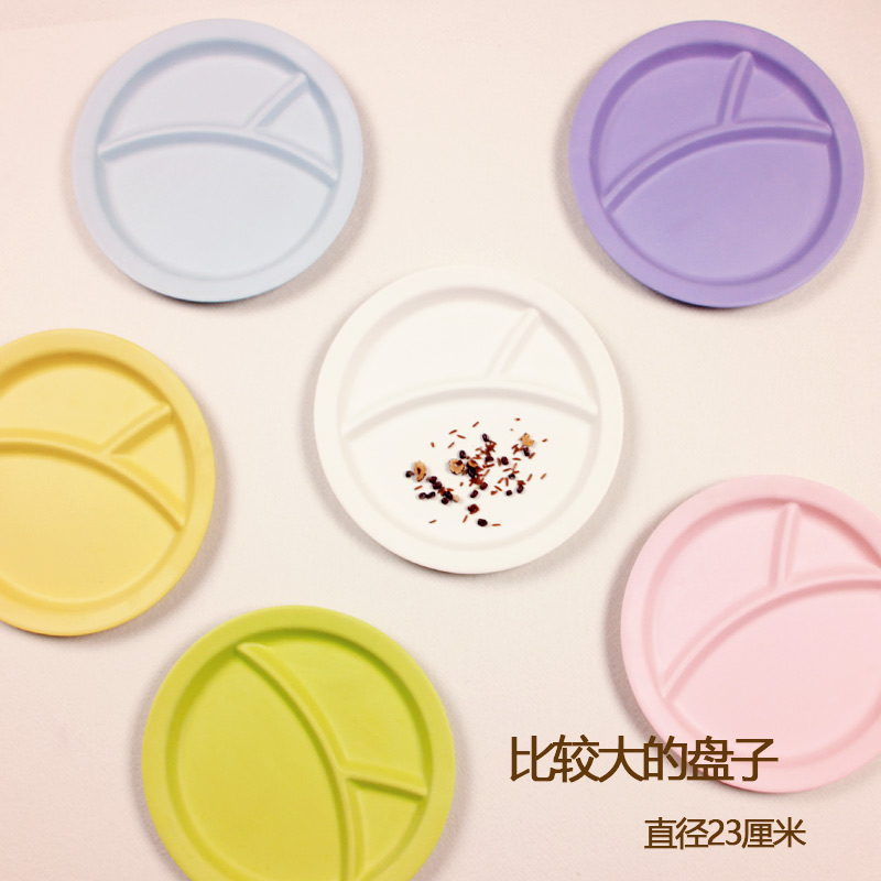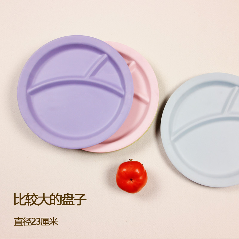 Bamboo fiber children's tableware candy-colored separation plate children's western food plate baby fruit plate shallow plate over 2 years old