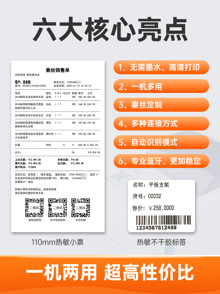 Qinsilk 110 multifunction printing machine Bluetooth multiple-in-one bill sign machine barcode electronic face single mobile phone collection