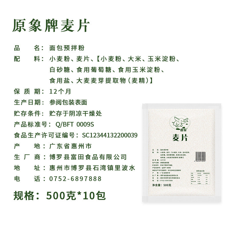 Original Elephant Brand Pure Wheat Sheet 500g * 10 Packs Boxes Bread Premixed Powder Wheat Base Pure Wheat Flakes Quality Nutritious Breakfast