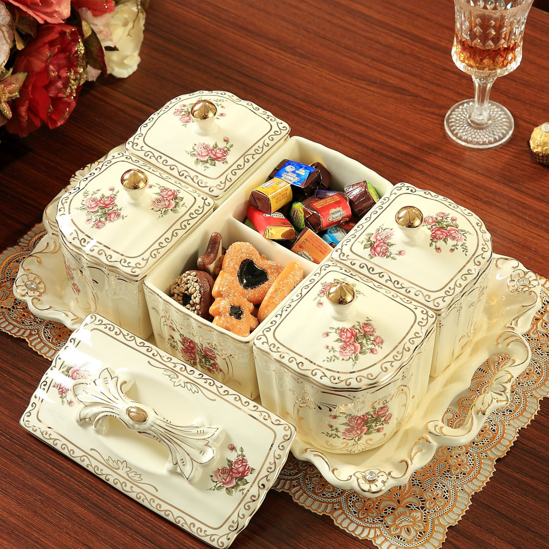 Elegant flash diamond dried fruit box (send European cloth mat) Rich Hibiscus dried fruit box(send European cloth mat) Romantic rose dried fruit box(send European cloth mat) can be rotated A section (send European cloth mat