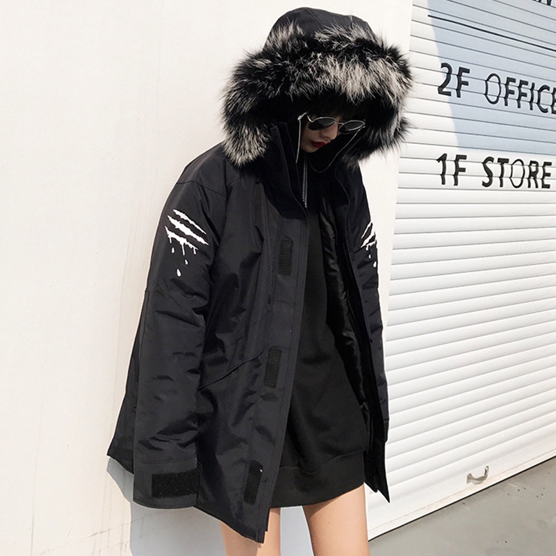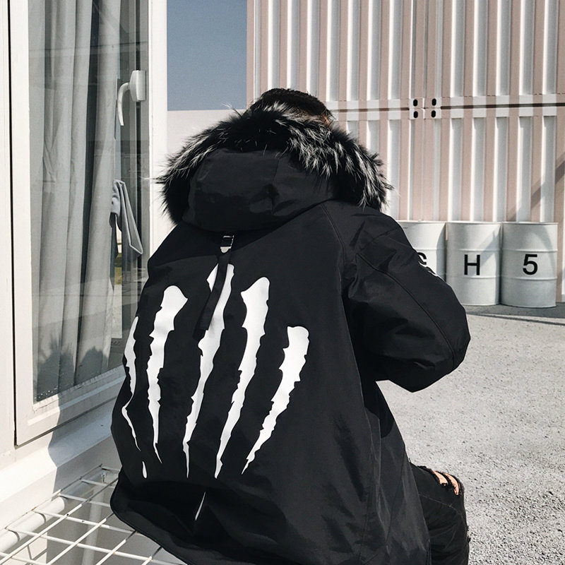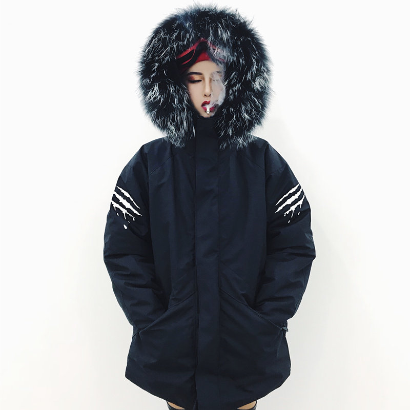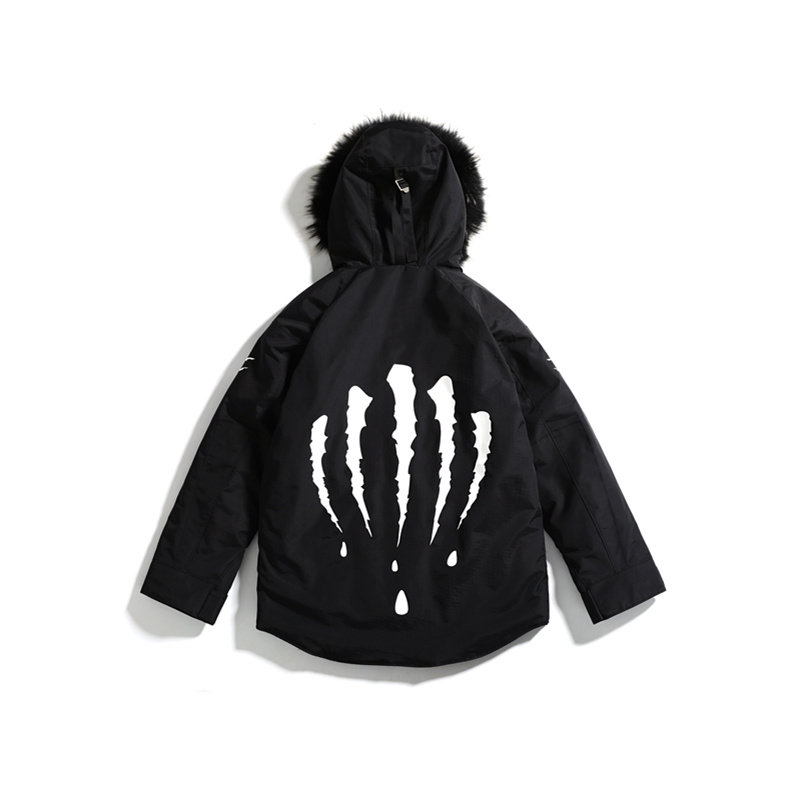 SuaMoment three generations of blood claw scratched seat mountain sculpted raccoon fur collar large coat men and women warm cotton clothing waterproof jacket