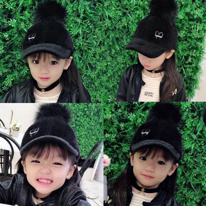 Girls woolen peaked cap Korean style autumn and winter oversized wool ball baseball cap warm hat children's fashion student trendy hat