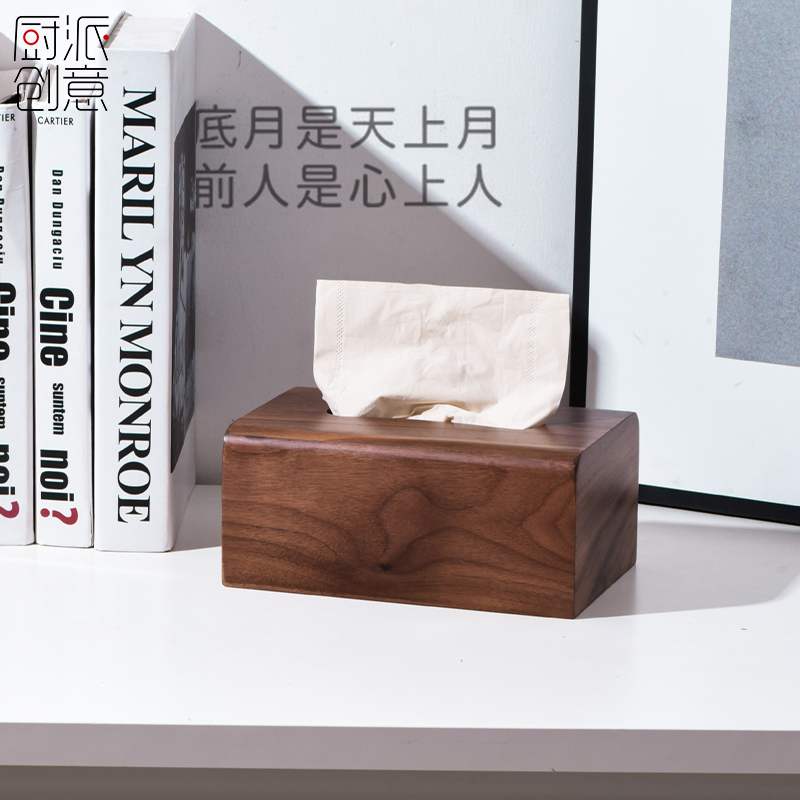 Walnut toilet paper box creative custom logo lettering premium sense tissue box living room light luxury new Chinese wood