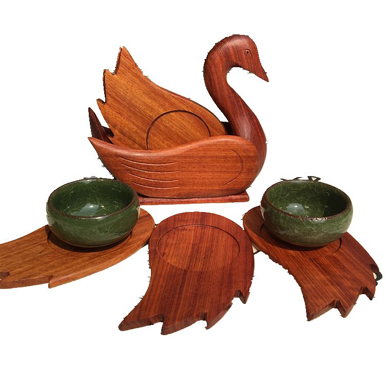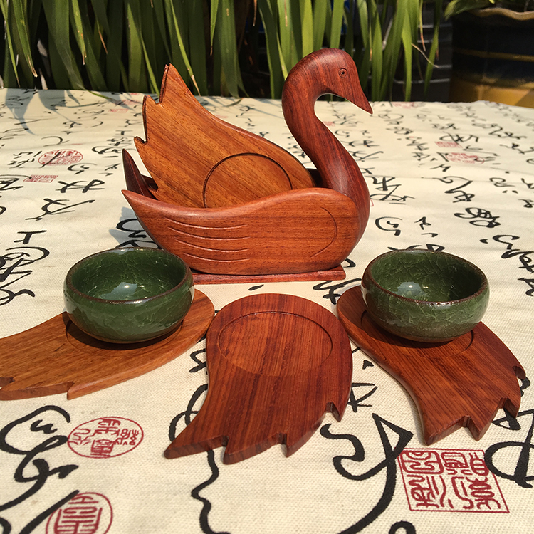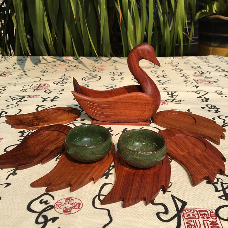 Mahogany swan tea cup mat Myanmar rosewood big fruit Rosewood solid wood tea tray anti-scalding heat insulation mat Tea table ornaments