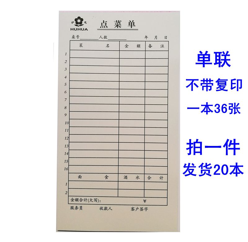 20 multi - provincial menu Single - order menu Hotel order menu Dining list without reprint