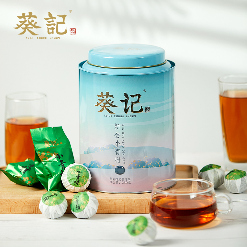 Kui Kee Small Green Citrus Puer Tea Ripe Tea Xinhui Tangerine Peel 4 years Yupin Citrus Puer Tea Orange Puer Tea gift box 250g*2 cans