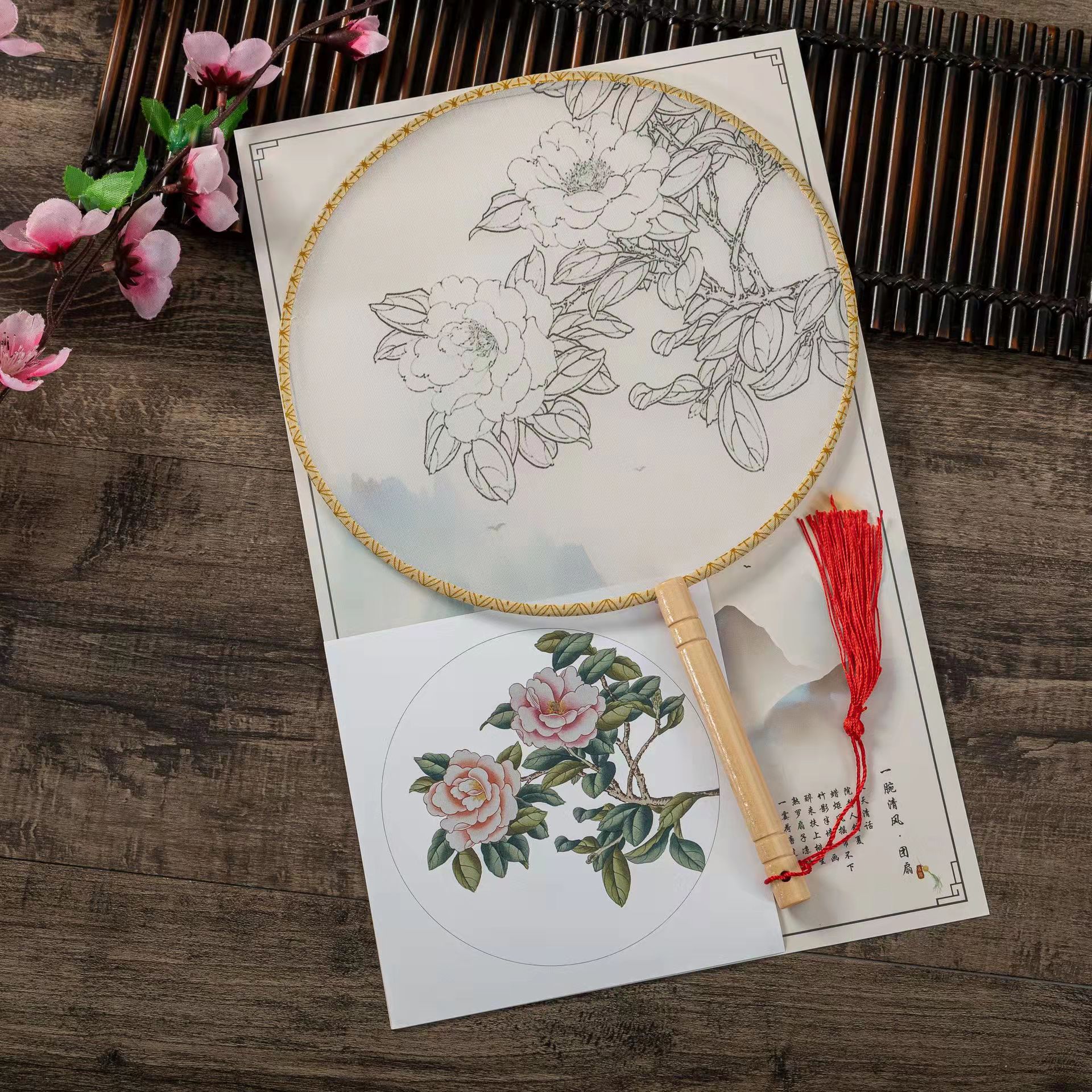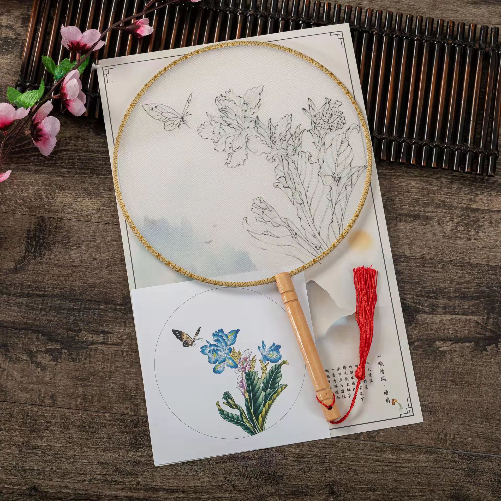 Round fan children diy hand-painted blank fan painting white fan palace fan cool fan kindergarten creative art materials